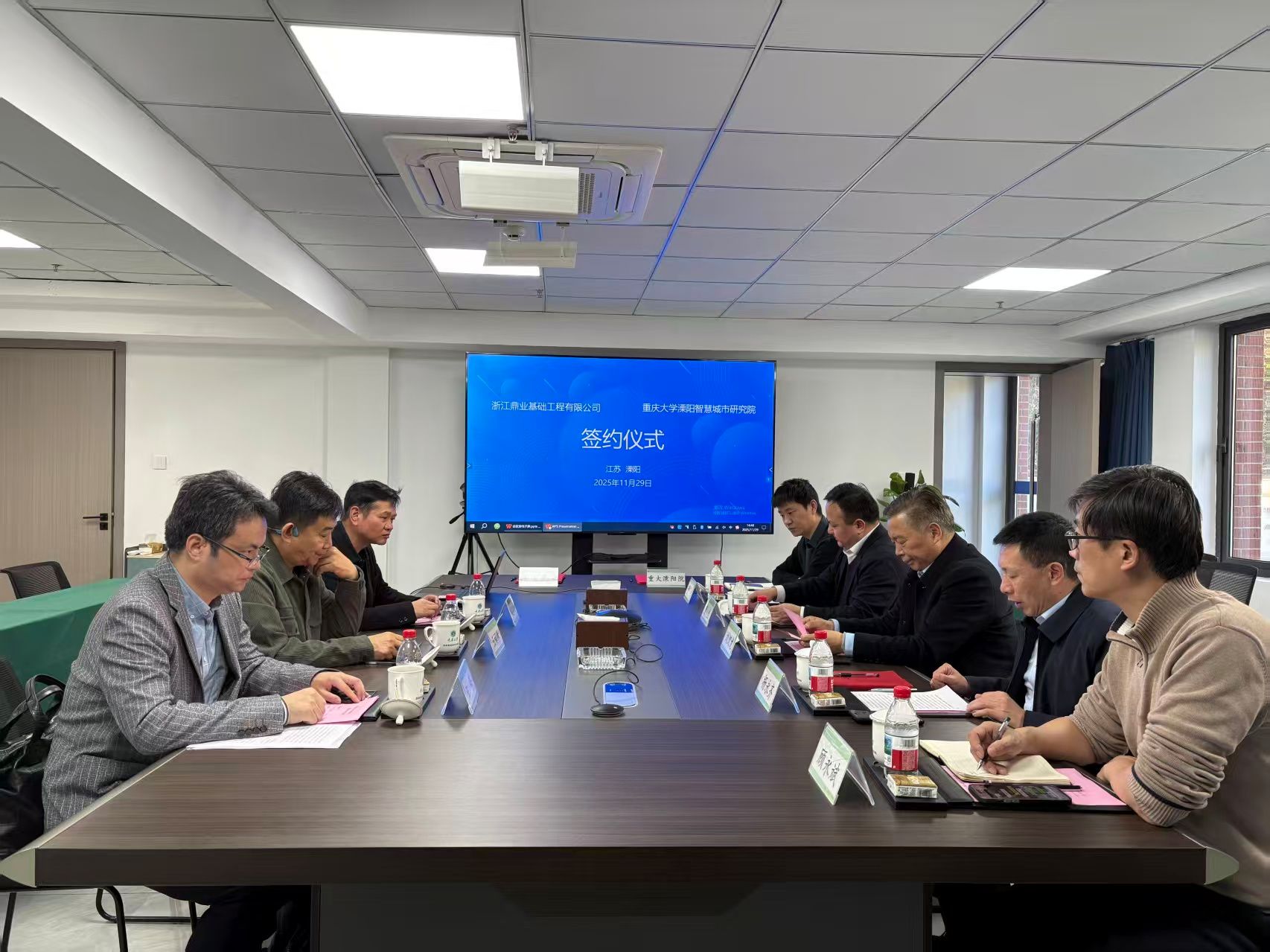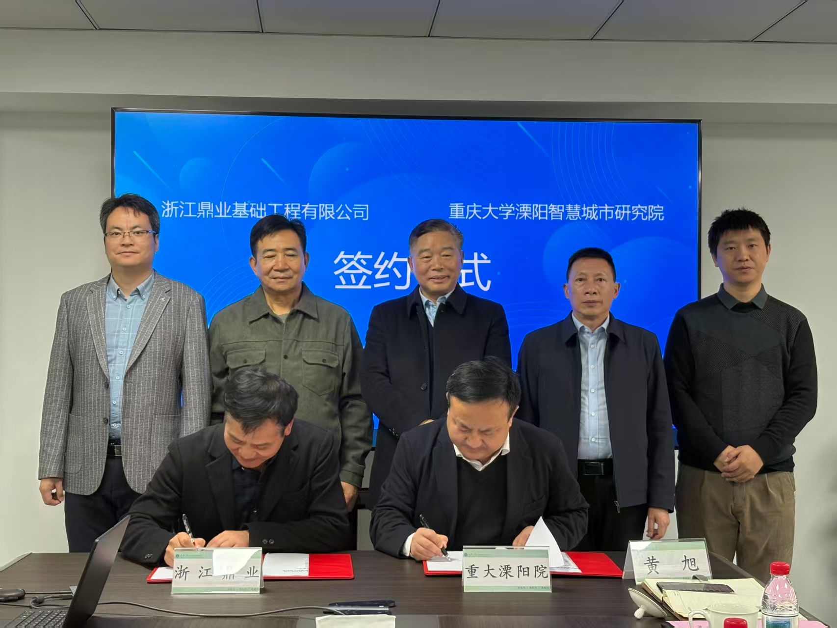 2025年11月29日下午,重庆大学溧阳智慧城市研究院(以下简称“研究院”)与浙江鼎业基础工程有限公司(以下简称“浙江鼎业”)合作协议签约仪式在研究院行政楼207会议室隆重举行。此次签约标志着双方正式携手共建“现代地基基础工程联合创新中心”,以产学研用深度融合为纽带,开启基础工程领域技术革新、产业升级的全新征程,为行业高质量发展注入强劲动能。